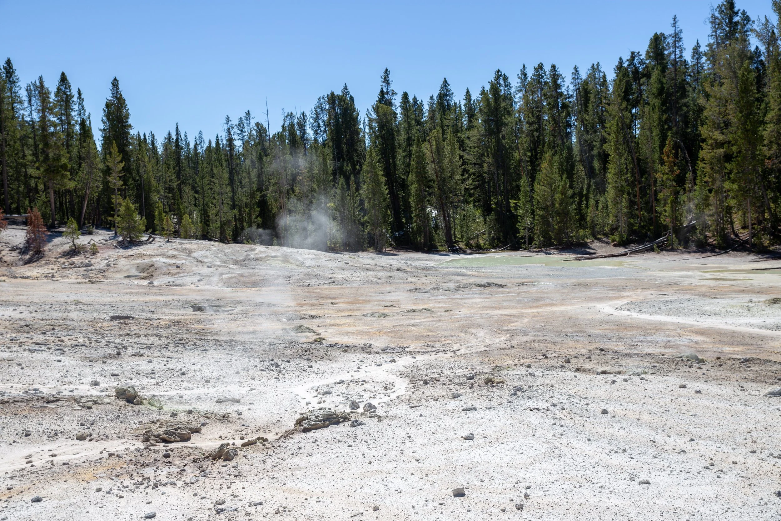 We wake up to a crisp morning. Today’s goal is to get onto the off-trail section of our journey and cover as much distance as possible. First, we have to climb Amethyst Mountain, Peaking at 9,600ft. Amethyst Mountain is one of the highest peak in the park .From the top, we glance at smoke in the distance, likely coming from the geothermal features we are aiming at. We follow the trail, making it to the summit before noon, at which point we start descending Southeast. The descent is sharp and takes us onto a wooded area. We suddenly shift from the brazen desert alpine to a lush forest which frankly smells like berries and roots. I tell my partners to watch out as we venture into the thick wood filled with wonderful forest scent. My instinct proves to be accurate as I suddenly glance at a full grown grizzly bear, busily foraging on a berry bush less than 40ft away from us. I spot the bear before he notices me and warns my partners. Eventually, the bear smells us and takes a peak at us. This is my first time making close eye contact with the predator. The first thing that strikes me is how smart this animal is. He carefully checks each and every one of us, individually. We stand right next to one another, silent, ready to face a potential charge. I am carrying a Marlin 45/70 guide gun, my friends are respectively caring bear spray as well as a 454 Casual Revolver. We’ve practiced using those weapons but would rather not have to resort to them. After carefully analyzing us, the grizzly makes the decision to charge the other way. Smart bear. I will never forget this encounter.